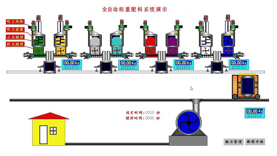 4. 自動化配料系統可擴展能力強:本系統可支持10臺攪拌機同時運行,若生產線需要增加產能,只需在原系統的基礎上增加攪拌機、在上位機系統上進行相應的設置即可完成產能的擴展。
